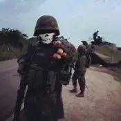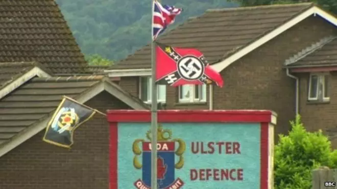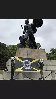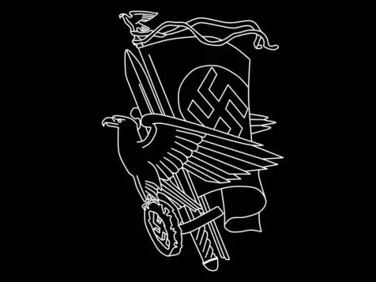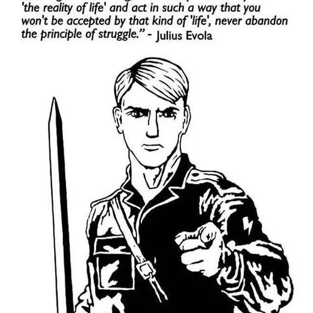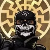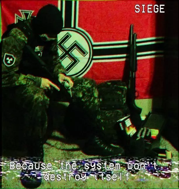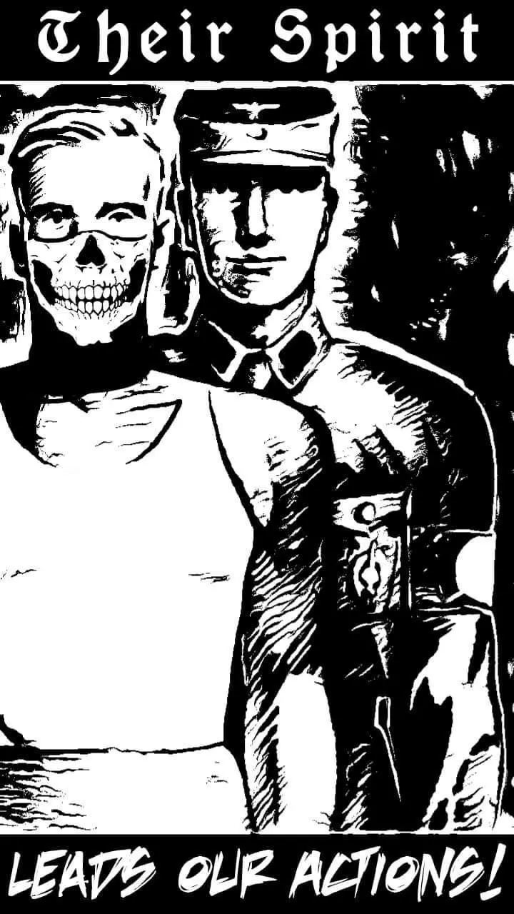 Some of the most common visual tropes in the imagery were Black Suns, swastikas, half skull masks, and SS Totenkopfs.